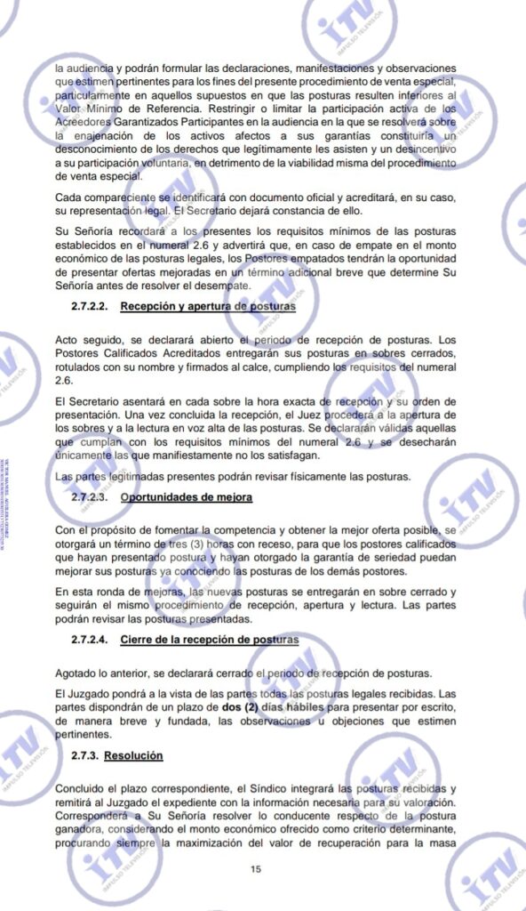 - Tiempos definidos: La audiencia para recibir posturas se llevaría a cabo en un plazo de 60 días naturales tras la autorización de las bases, con una ventana de prórroga de hasta 90 días si el proceso lo requiere.