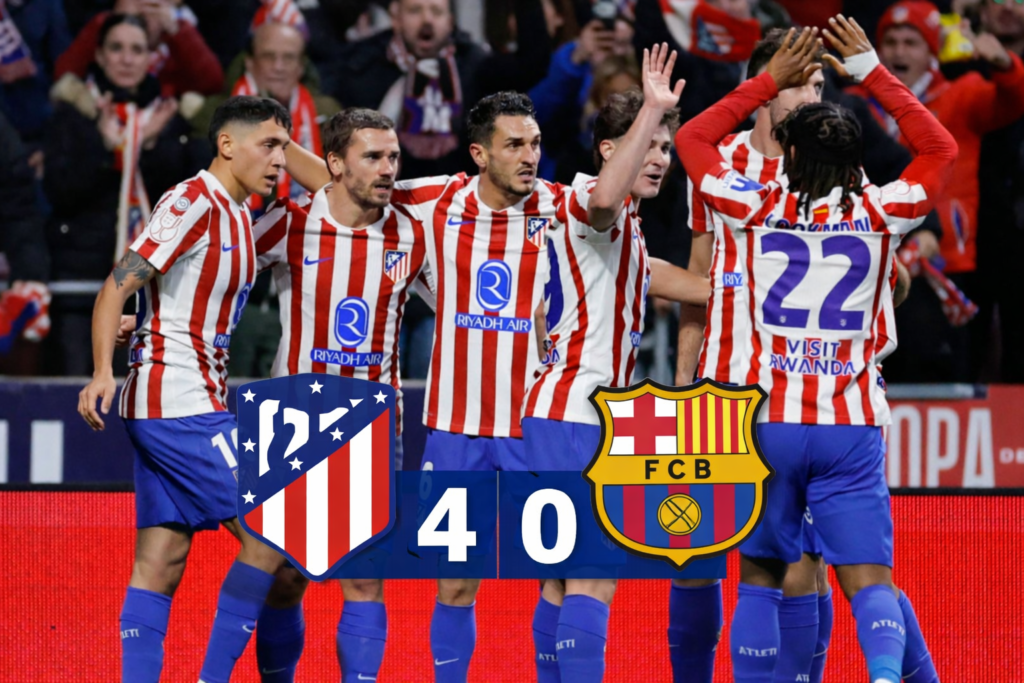 El Atlético de Madrid firmó una actuación contundente al vencer 4-0 al FC Barcelona en la ida de las semifinales de la Copa del Rey. El duelo se jugó en el Metropolitano y dejó a los rojiblancos con una amplia ventaja.