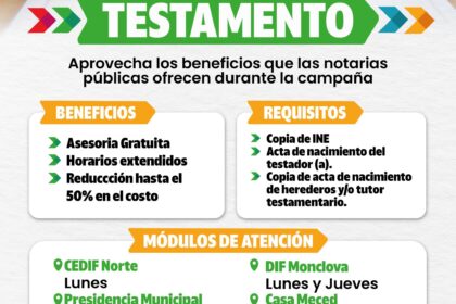 Monclova, Coahuila, 22 de septiembre de 2025.- El Gobierno Municipal que encabeza el alcalde Carlos Villarreal invita a la ciudadanía a aprovechar durante septiembre el programa del Mes del Testamento...