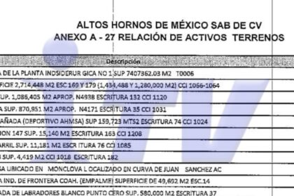 Subtítulo: Rosario Rocha confirma que los bienes forman parte del avalúo inicial de 1,126 millones de dólares, equivalente al 85% del total de AHMSA y MINOSA El proceso de quiebra de Altos Hornos de M...