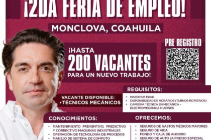 El evento ofrecerá hasta 200 vacantes para técnicos mecánicos con atractivas prestaciones y será el 19 de agosto en Monclov En apoyo a los ex trabajadores de Altos Hornos de México, el senador Luis Fe...