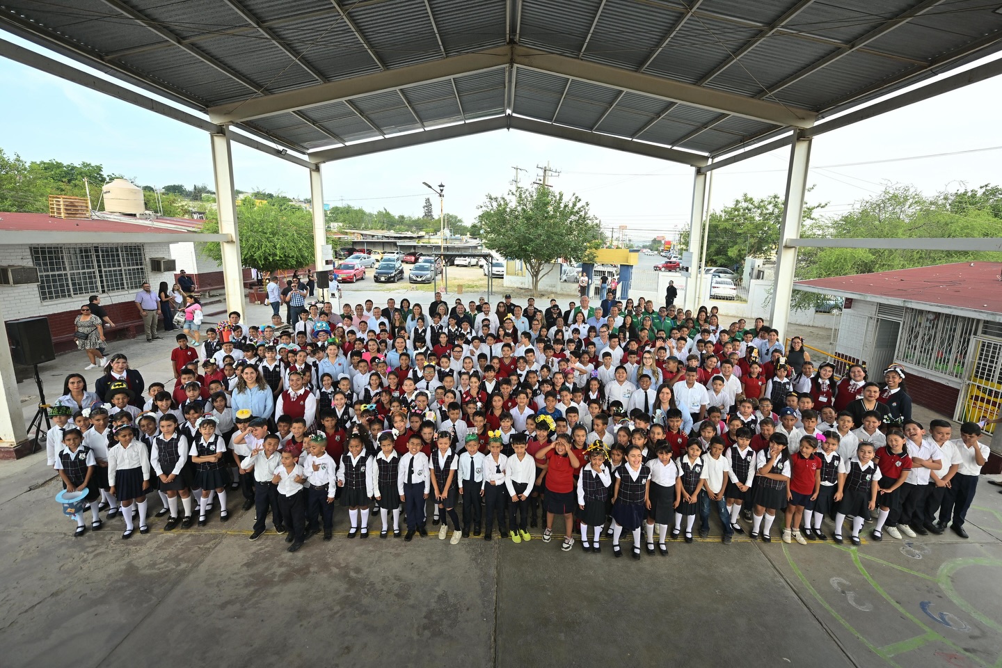 El alcalde Carlos Villarreal visitó la escuela Aquiles Serdán para realizar honores a la bandera y constatar la terminación de obras educativas.