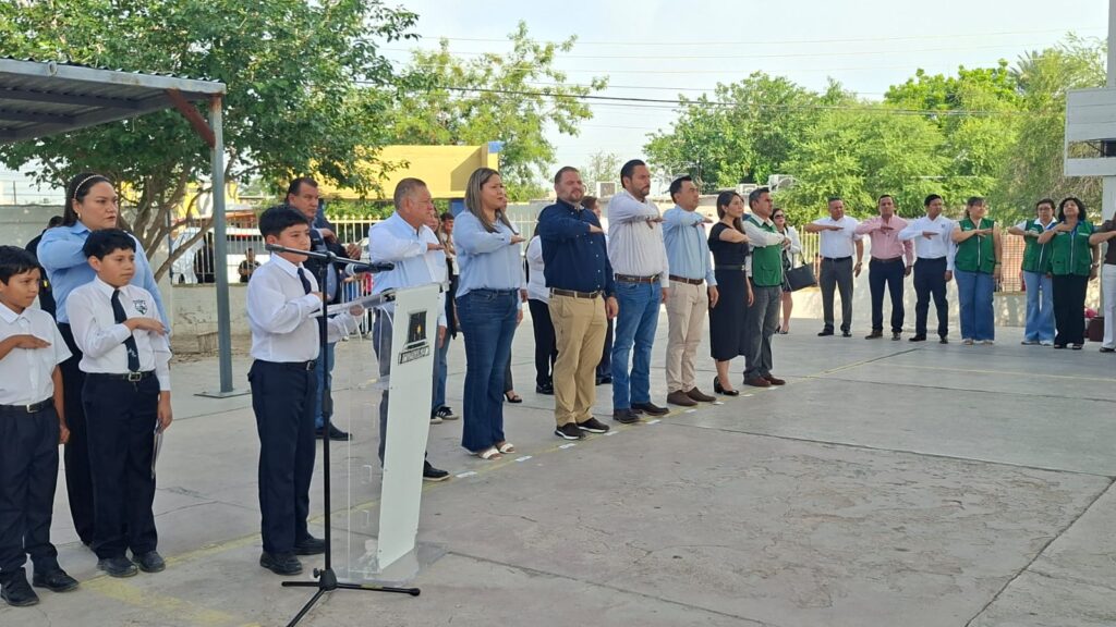 El alcalde de Monclova, Carlos Villarreal Pérez, inició su agenda semanal con un acto cívico en la Escuela Primaria Aquiles Serdán. En compañía de autoridades municipales, docentes y alumnos, el edil participó en la ceremonia de honores a la bandera, actividad destinada a reforzar el sentido de identidad en los estudiantes.