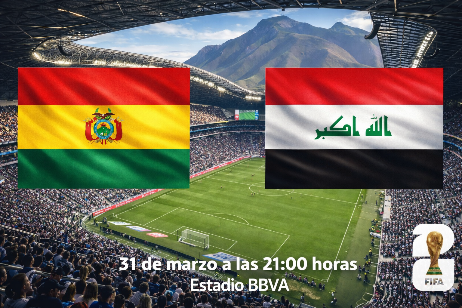 Las selecciones de Irak y Bolivia se enfrentan este 31 de marzo en un partido decisivo rumbo al Copa Mundial de la FIFA 2026. El encuentro se disputa en el Estadio BBVA y definirá a uno de los últimos clasificados al torneo.