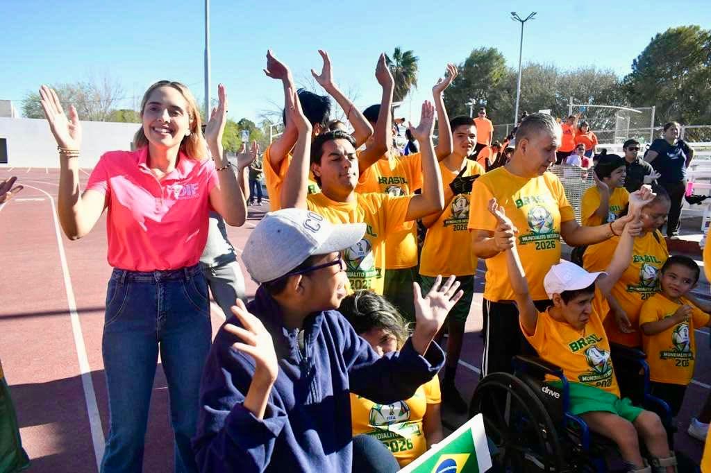 Monclova, Coahuila, 11 de marzo de 2026.- Con el objetivo de promover la convivencia, la inclusión y el desarrollo integral de las y los alumnos de los Centros de Atención Múltiple (CAM) de la Región Centro–Desierto, la presidenta honoraria del DIF Monclova, Mavi Sosa, asistió en representación del alcalde Carlos Villarreal al Mundialito InterCAM 2026 “Deporte Sin Barreras”, organizado por la Secretaría de Educación de Coahuila.