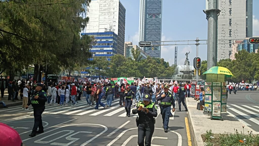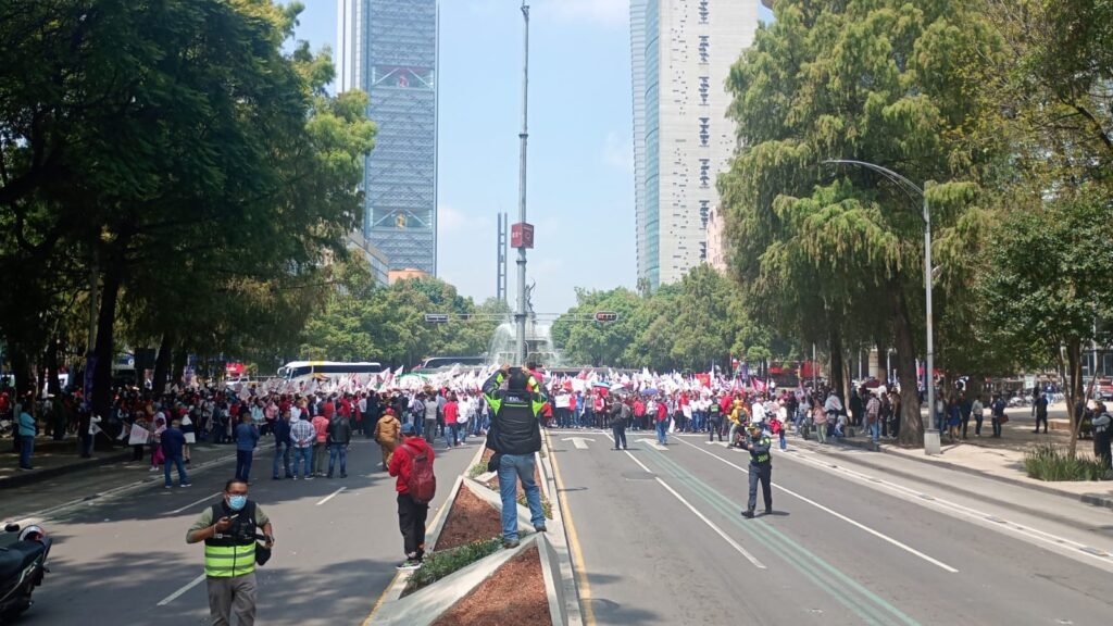 La mañana de este 28 de agosto, miles de simpatizantes del PRI se dieron cita en la Glorieta de la Diana Cazadora para iniciar una marcha en respaldo a Alejandro “Alito” Moreno. El contingente avanzó por Paseo de la Reforma, pasando por el Ángel de la Independencia, con destino al Senado.