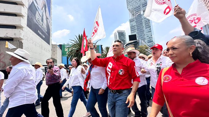 Alejandro Moreno encabezó la marcha acompañado de bases campesinas y diferentes sectores de su partido. El dirigente se unió a la vanguardia del contingente para continuar el trayecto hasta la Cámara de Senadores, donde fue recibido entre aplausos y muestras de apoyo por parte de los militantes priistas.