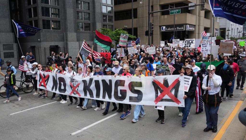 El movimiento “No Kings” agrupa a unas 300 organizaciones civiles que critican lo que consideran un exceso de poder presidencial. En sus mensajes, señalan que en Estados Unidos no hay lugar para figuras autoritarias y advierten que no aceptarán decisiones que, a su juicio, afectan la democracia y las libertades.