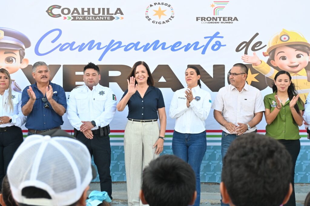 Frontera, Coahuila, a 18 de agosto de 2025.- La alcaldesa Sari Pérez Cantú, acompañada por la Subsecretaria de Proximidad Social y Prevención, Lic. Gabriela Franyuti García, inauguró el Campamento de Verano de Seguridad Pública 2025, una iniciativa que acerca a la niñez fronterense al trabajo de quienes diariamente cuidan de la seguridad y tranquilidad de las familias.