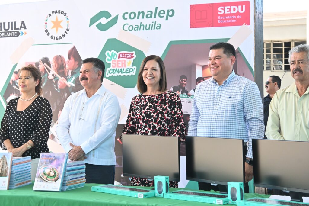 Durante el evento, la alcaldesa estuvo acompañada por el Ing. Alfio Vega de la Peña, director estatal del Conalep; el Lic. Mario Alberto Martínez Palacios, director del plantel; la Lic. Ana Carrillo Santella, representante de la empresa Fasemex; y el Prof. Félix Rodríguez Ramos, director de Educación Municipal.