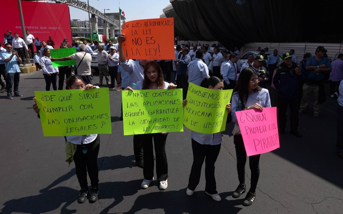 Aeropuerto anuncia operativos de seguridad mientras Uber afirma que un juez ordenó frenar sanciones contra sus conductores Un grupo de taxistas con permiso para operar en el Aeropuerto Internacional de la Ciudad de México realizó este miércoles un bloqueo en los accesos a las terminales 1 y 2. La protesta fue organizada por integrantes de la agrupación Nueva Imagen, quienes exigieron que las plataformas digitales cumplan las mismas reglas.