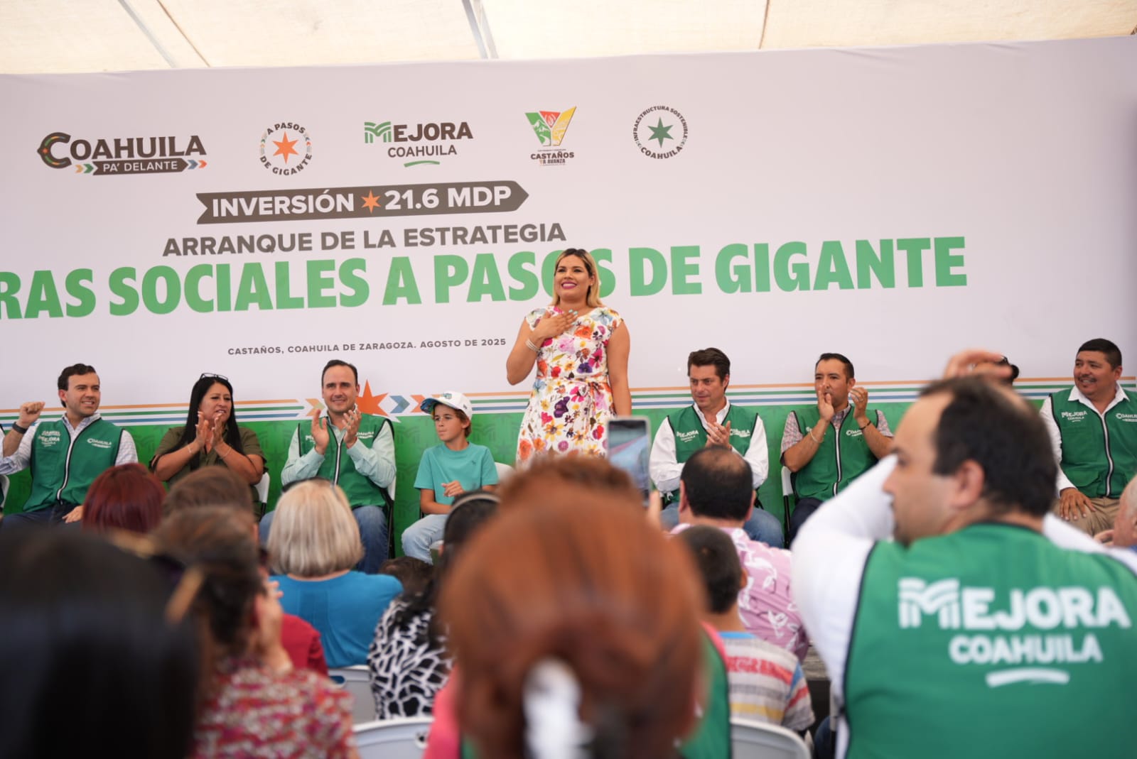 Castaños, Coahuila a 19 de agosto del 2025.- En un trabajo conjunto, la Alcaldesa de Castaños, Yesica Sifuentes Zamora, y el Gobernador de Coahuila, Manolo Jiménez Salinas, dieron inicio a la estrategia Obras Sociales a Pasos de Gigante, que contempla una inversión de 21.6 millones de pesos en beneficio de las familias castañenses.